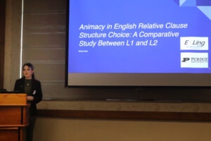 On April 10th, two of our lab undergraduate research assistants presented their research at the Literature, Linguistics, Languages, and Culture (LLLC) Colloquium at Purdue University. Marley Mack (mentored by Yue Li and Dr. Elaine Francis) presented her project titled “Animacy in English Object Relative Clause Structure Choice: A Comparative Study Between L1 and L2.” Her […]
