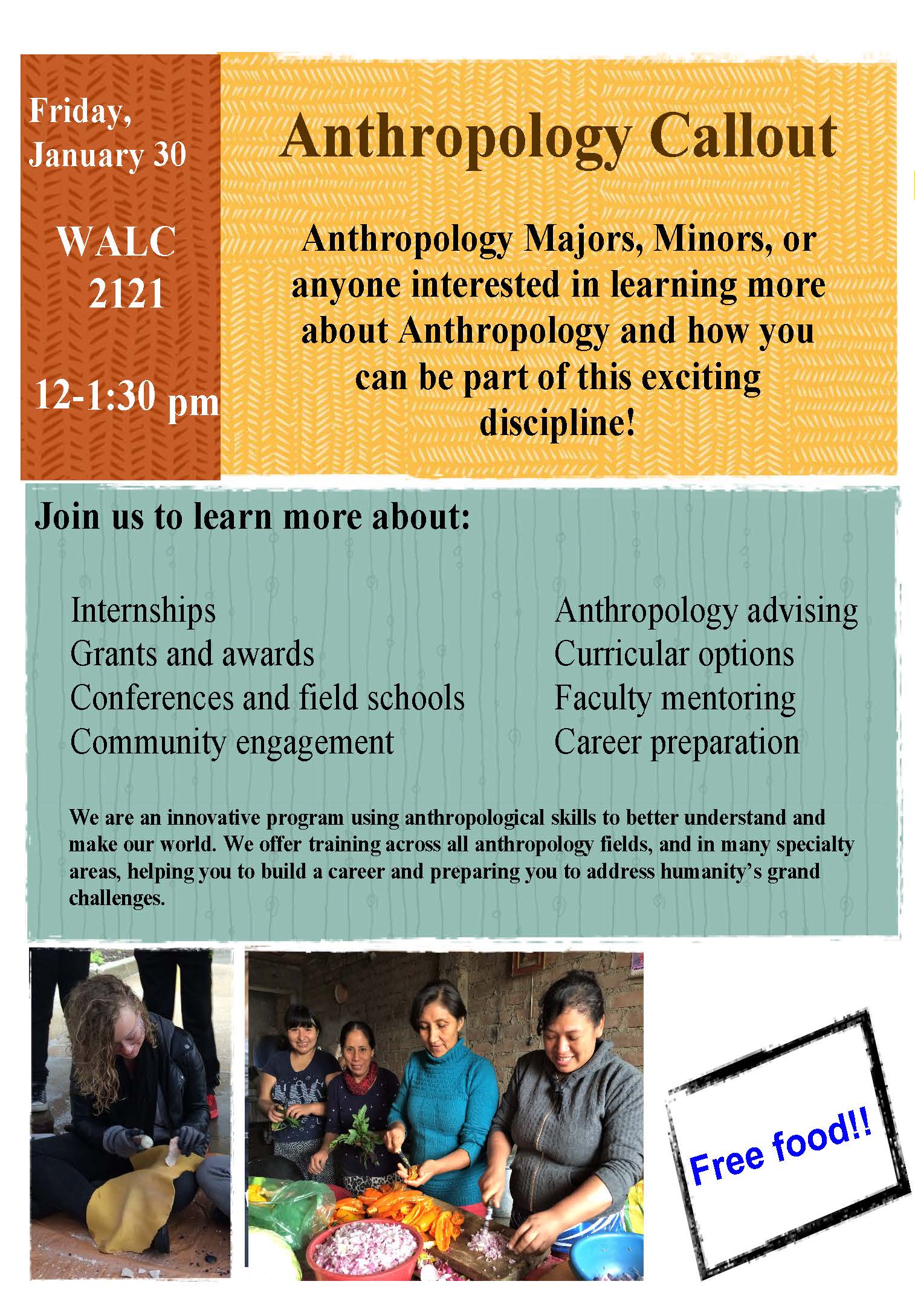 Anthropology Majors, Minors, or anyone interested in learning more about Anthropology and how you can be part of this diverse and exciting discipline!
