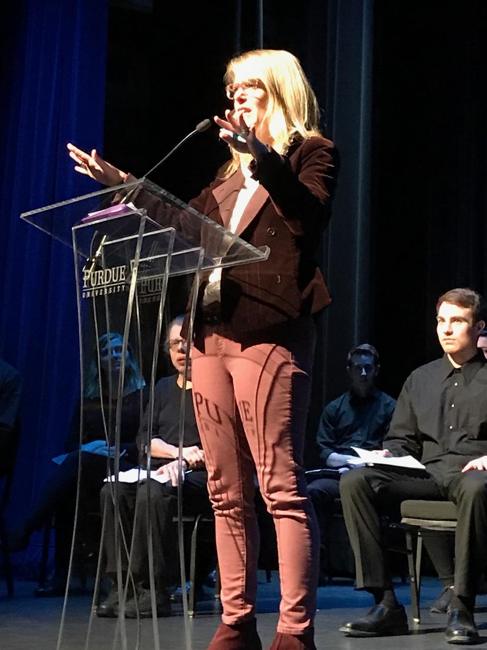 As part of the Medical Humanities Collective and Purdue's 150th anniversary Ideas Festival, Dr. Christine Montross, award-winning writer, physician, and psychiatrist at Brown University, discussed mental health issues and shared insights on her 2013 publication Falling into the Fire: A Psychiatrist's Encounters with the Mind in Crisis.