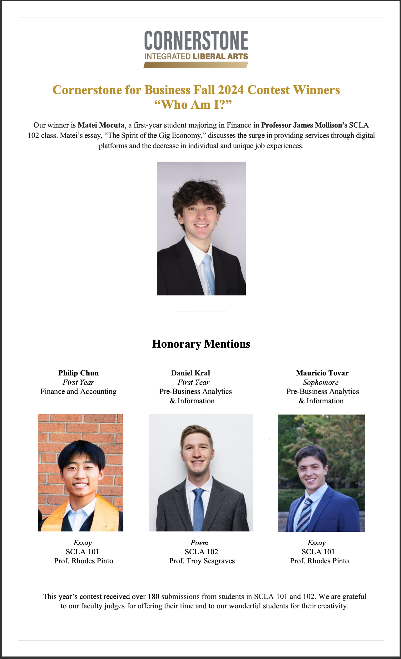 Cornerstone for Business Fall 2023 Contest Winners “Wealth”