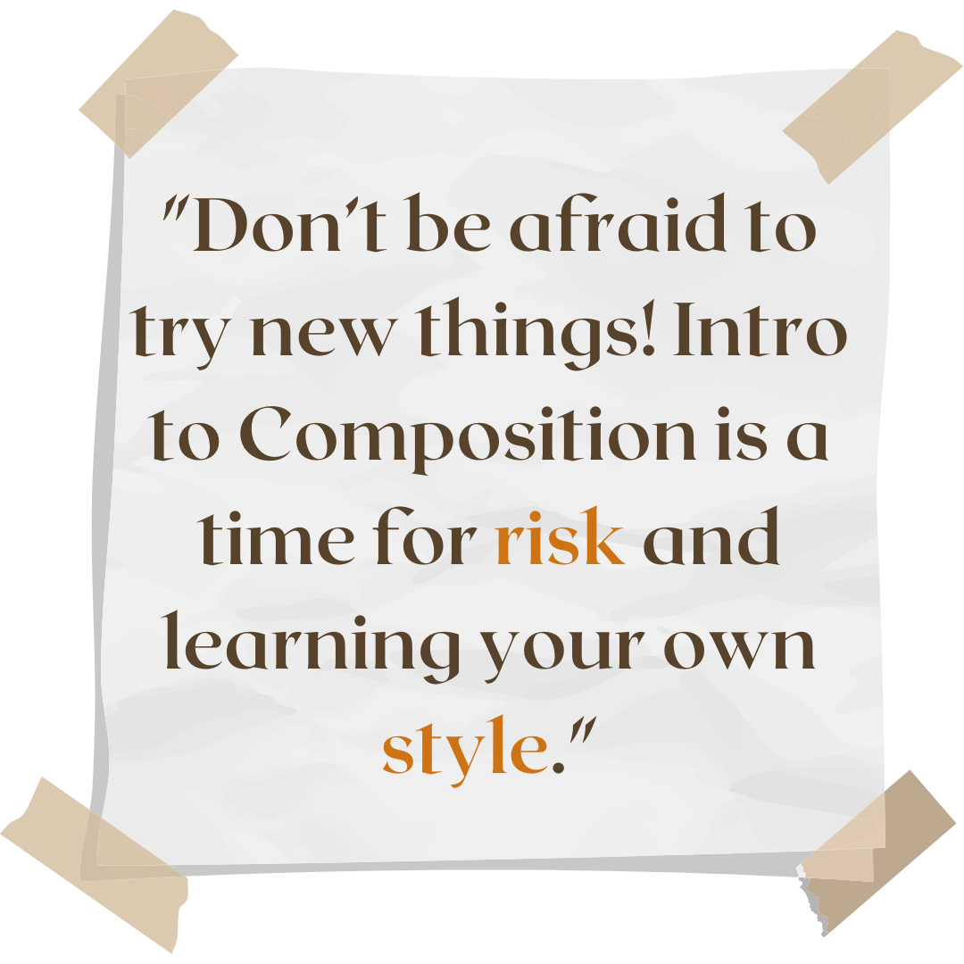 LB: Cliche time: Don’t be afraid to try new things! Intro to Composition is a time for risk and learning your own style. If something sounds fun, write about it. If you want to argue a certain point, make it work. That’s the entire point of it. You’ll read texts you get bored with or hate, but take that opportunity to learn WHY you hate it. Why do you think the Little Prince is annoying? Dissect your reasoning and argue about it.