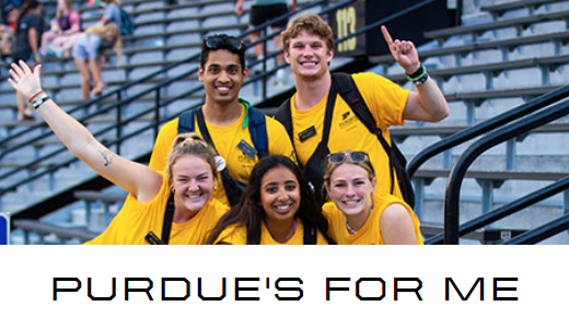 Offered on multiple dates during the spring semester, Purdue’s for Me is designed to answer all your questions about your next steps for accepting your offer, and to show you and your family what it is like to live and study at Purdue. This full-day program includes information sessions; meet-and-greets with current students, advisors, and faculty; a campus and residence hall tour; and lunch in our award-winning dining courts. Learn more, and register for your visit, here.