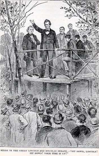 One of the seminal moments in American debate history are the 1858 debates between Abraham Lincoln and Stephen A. Douglas for the Illinois Senate. The two politicians engaged in a series of seven debates across the state of Illinois. These debates focused on the issues of slavery in new territories and popular sovereignty. Many contemporary politicians, journalists, and citizens believe that these debates were the epitome of what politics should be today, intellectual battles over the issues between the candidates.
