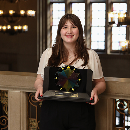 Department of History graduating senior Grace Evanoski (above) was recently presented with the 2025 College of Liberal Arts Outstanding Senior Award. The Awards event was held in the East & West Lounges at the Purdue Memorial Union on April 11, 2025. Congratulations, Grace!