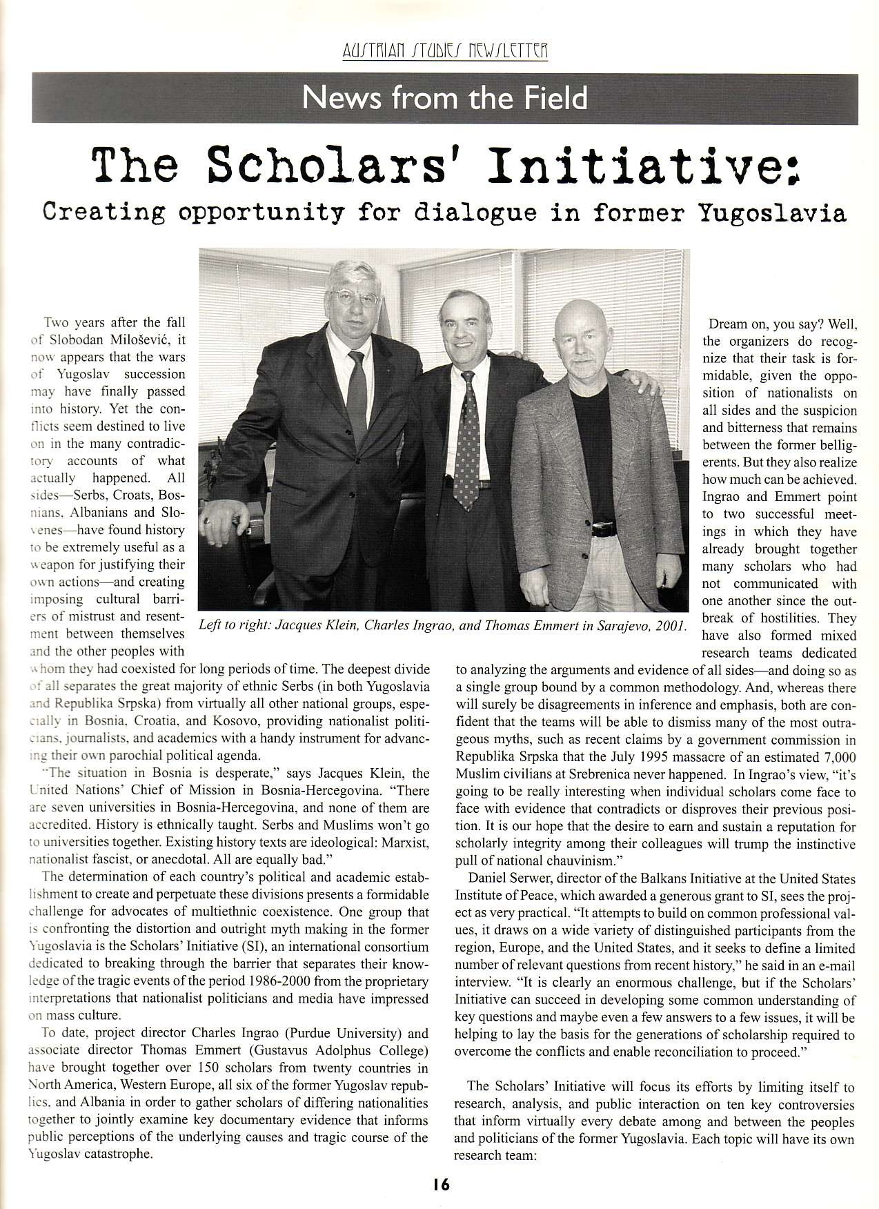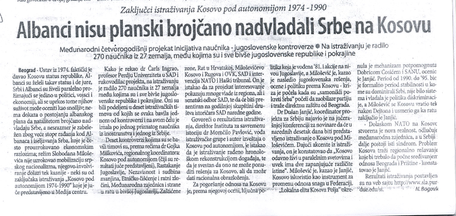 Veliki znanstveni projekt o raspadu Jugoslavije - PCNEN, 09.02.2005