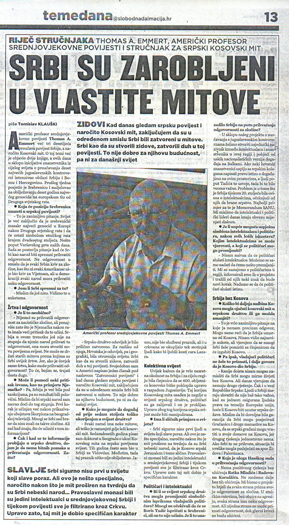 Srbi su zarobljeni u vlastite mitove - Slobodna Dalmacija (Picture), 21.07.2005