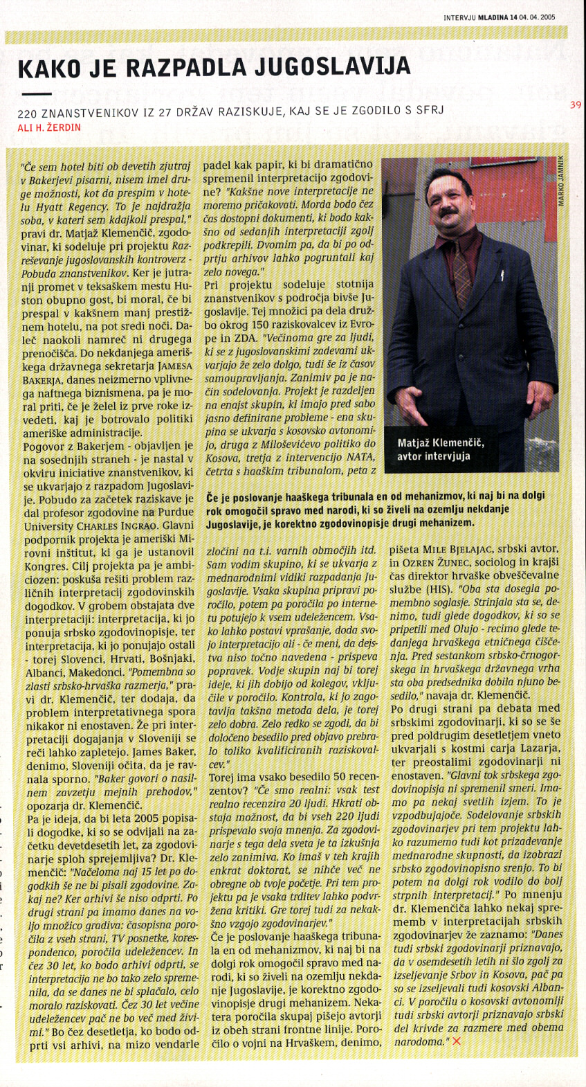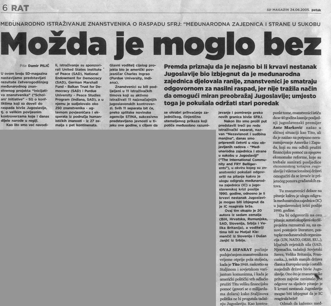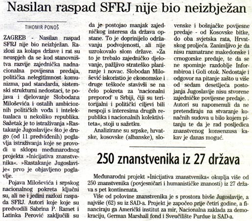 Raspad SFRJ Znanstevno rušenje mitova - Slobodna Dalmacija (Weblink), 26.02.2005