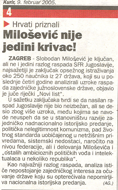 Milosevic nije jedini krivac! - Kurir (Picture), 09.02.2005