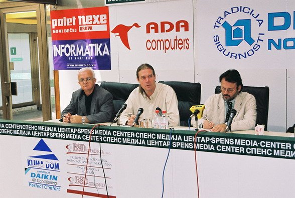 and Mile Bjelajac give press conference in Novi Sad, July 2005