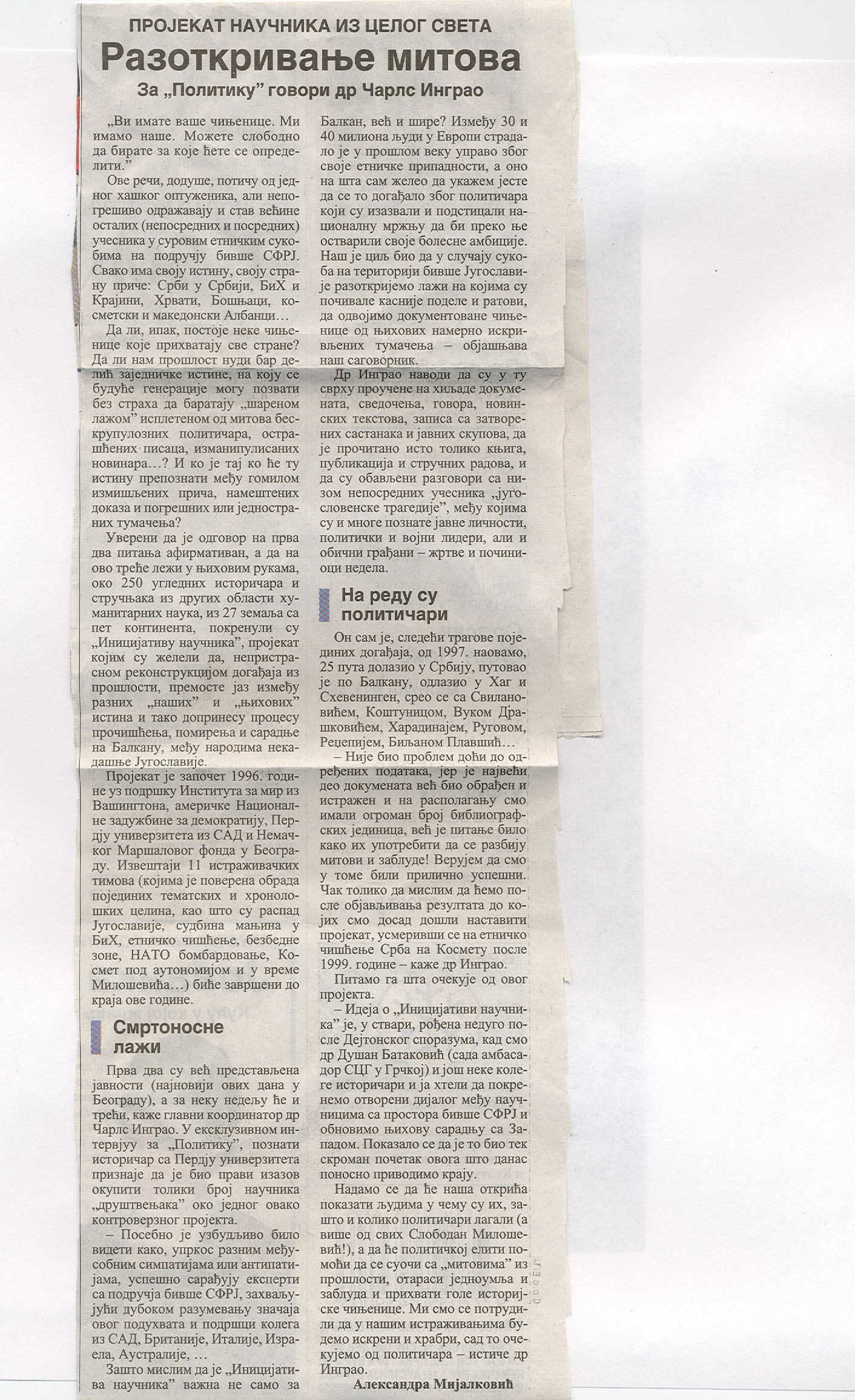 Uskoro završetak projekta o demitologizaciji istorije, 09.30.2006