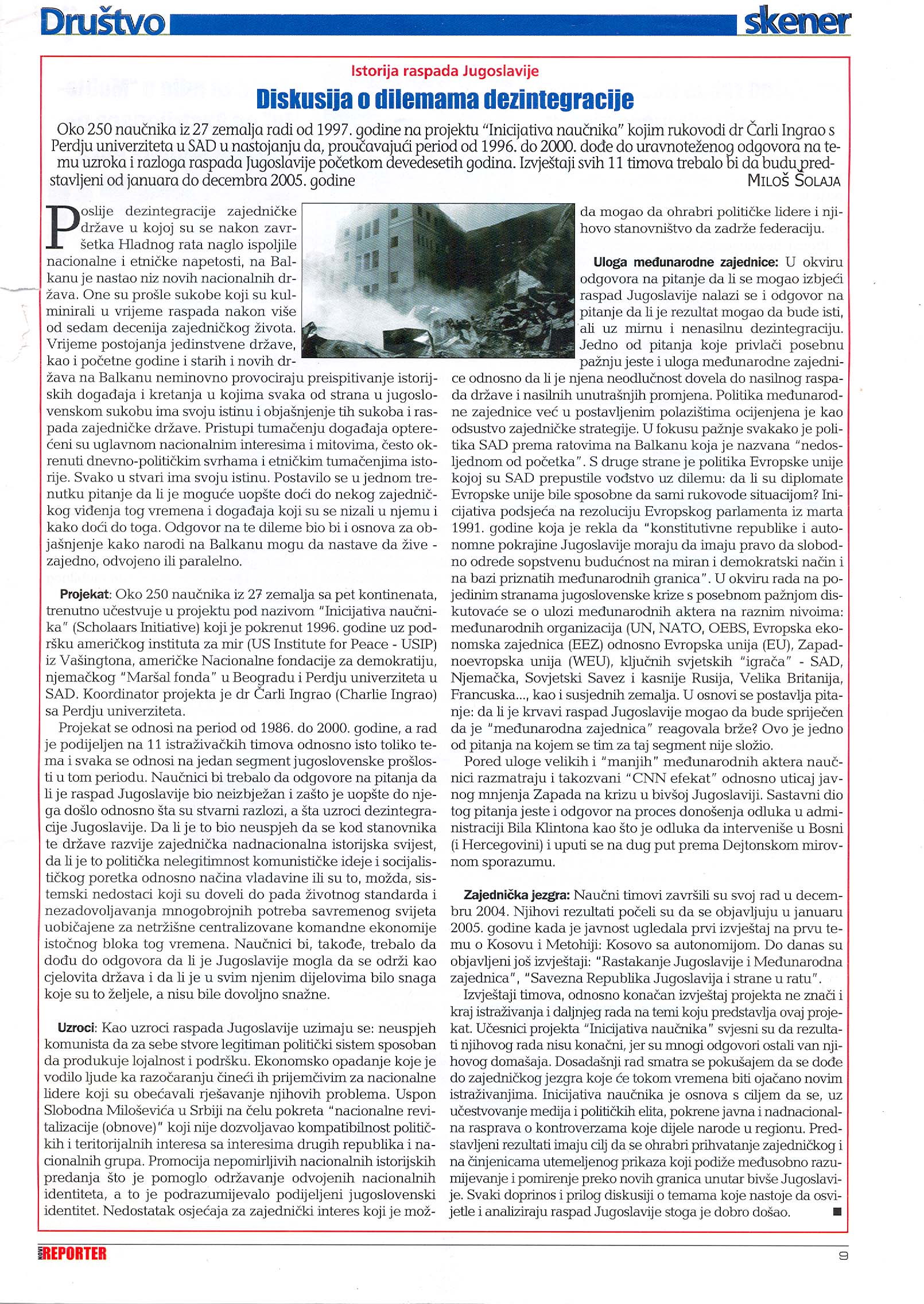 Veliki znanstveni projekt o raspadu Jugoslavije - Vijesti, 09.02.2005