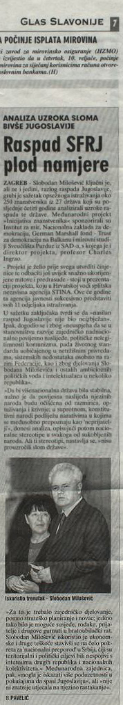 Raspad SFRJ plod namjere - Glas Slavonije, 09.02.2005