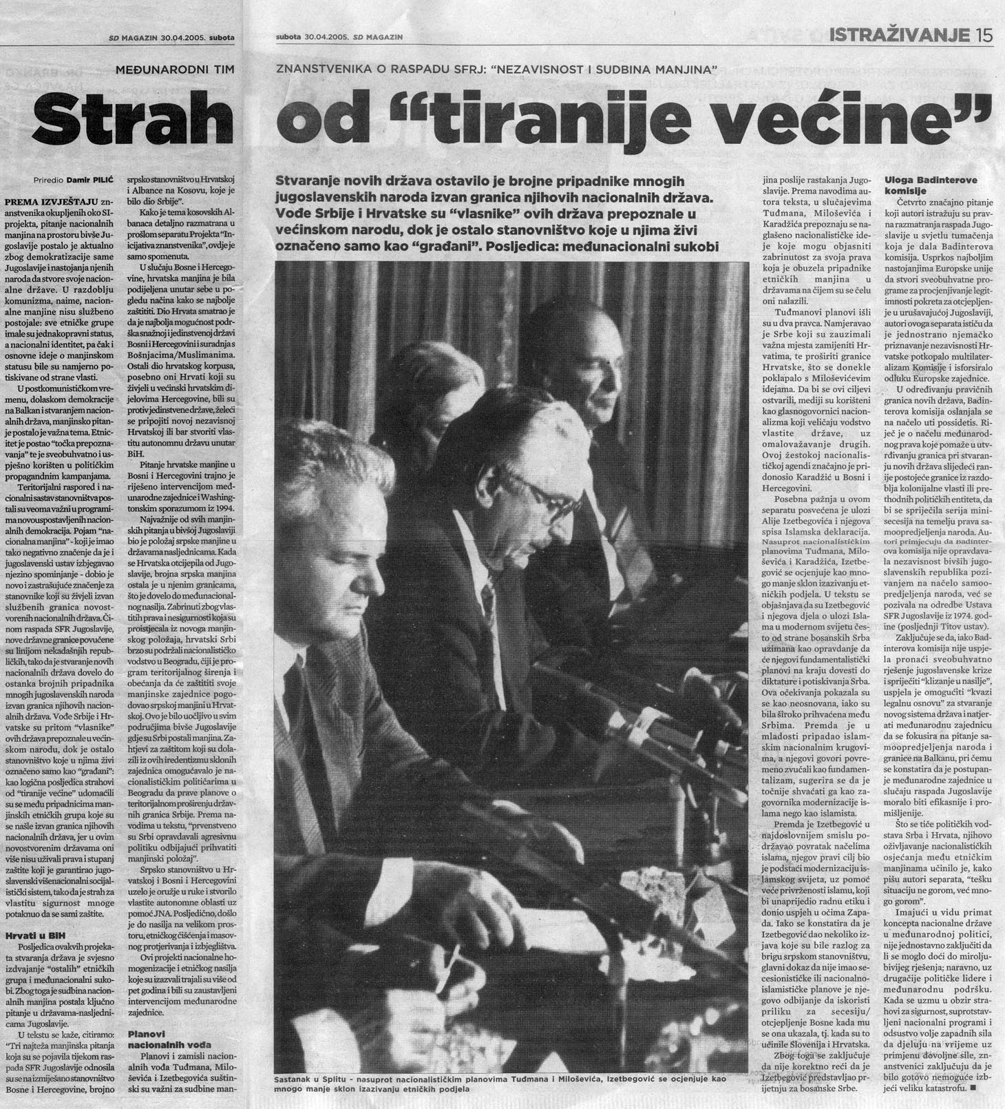 Strah od "tiranije većine" - Slobodna Dalmacija (Picture), 30.04.2005