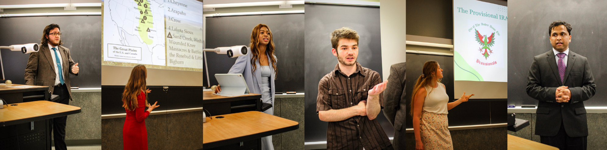 In the spring, students register for HIST 422: Honors Thesis Research which offers them 3 credit hours but is not actually a class. Rather, students work closely with their faculty mentor and write a 45-to-50 page historical essay based on their research. At the end of the spring semester, students provide an oral defense of their thesis before their mentor and a second reader (another Department of History faculty member), and then present their work publicly to families, friends, and the Department of History faculty at the annual History Honors Forum.