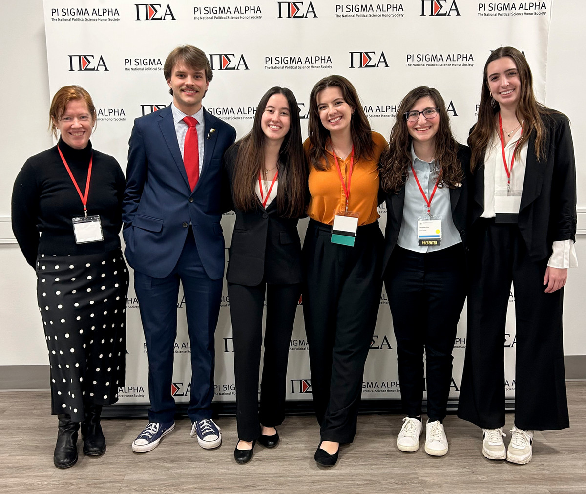 The Department is proud to support our award-winning chapter of Pi Sigma Alpha, the Political Science Honor Society. In addition to holding events and bringing in both internal and externals speakers to talk about all things political science (from elections to law school to how to write a resume), our Delta Omega chapter always looks forward to the Pi Sigma Alpha National Student Research Conference in Washington.