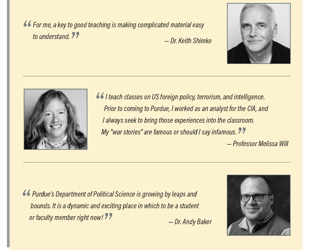 The Political Science Department has more than 30 dedicated faculty members who excel in original research and innovative teaching methods. This commitment is reflected in the broad range of courses we offer, covering International Conflict, Constitutional Law, Artificial Intelligence Policy, Environmental Policy, and more. With such diverse offerings, there's sure to be something that will interest every student.