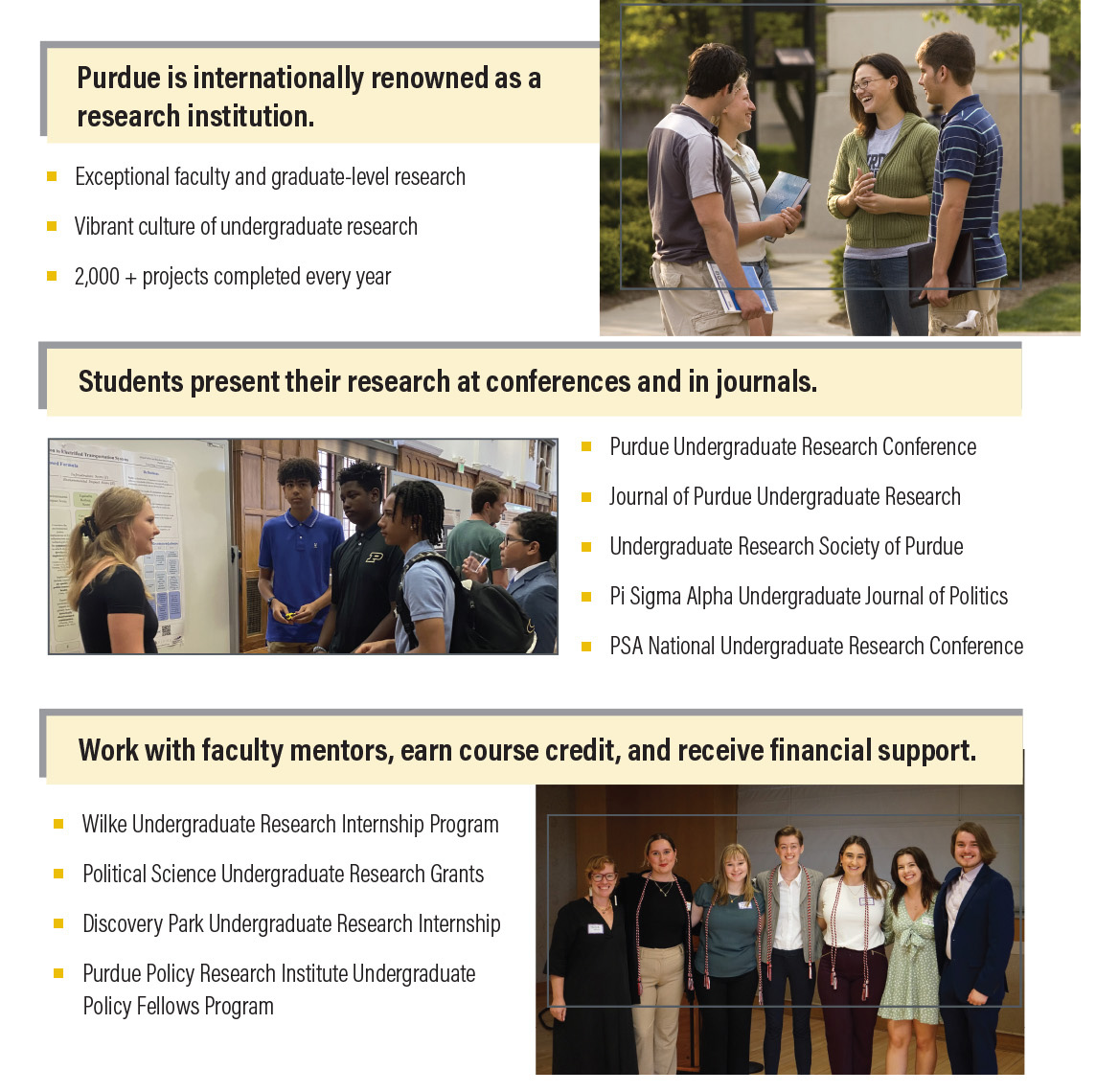 "I have an interest in Politics. I love learning about American government as well as American history, and I ultimately want to write legislation. One type of policy that’s really close to my heart is education. There are a lot of really great policies out there to help people who can’t get to school, or people who don’t necessarily have the resources like I have here at Purdue."