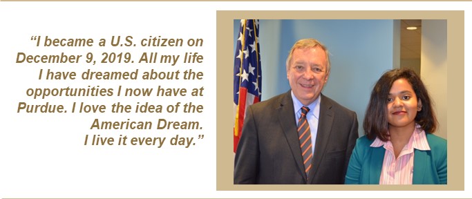 At 13, Aslam immigrated to the U.S. from Pakistan, so studying U.S. government in her American high school was a new concept. “I didn’t understand American politics well. I didn’t grow up with it.” She was fascinated by it and other social studies classes and became politically active through the National Social Studies Honor Society, Rho Kappa. Taking a leap, she decided to major in political science at Purdue, letting go of her family’s lifelong expectation that she would major in pre-med and become a medical doctor.