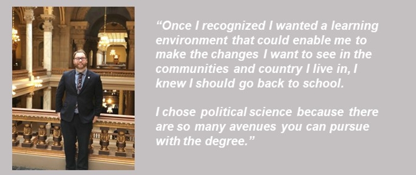 Graduating in 2019 with a B.A. in Political Science, Alex Mullenix followed a non-traditional path which led him to graduate study in urban planing. Learn more about Alex by clicking below.