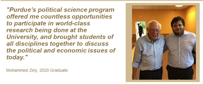 2020 Political Science graduate, Mohammed Ziny, immersed himself in the high-impact learning opportunities afforded to Purdue undergraduates including working with the Indiana Senate Democratic Caucus and the Center for C-SPAN Scholarship and Engagement located on the university’s campus. Click to learn more.