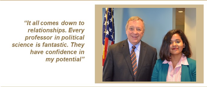 Warisha Aslam, political science major and psychology minor, became a citizen of the United States in December 2019 and learned first hand about American democracy during a summer internship for a U.S. Senator. Learn more about her experiences by clicking below.