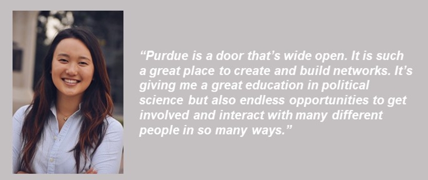 Sophomore Shannon Kang from Atlanta, majoring in Political Science with minors in Statistics and Spanish is the youngest leader to ever serve on the West Lafayette City Council. Click to learn more.
