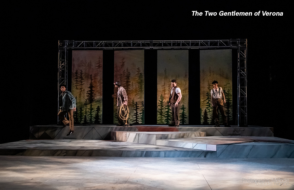 For her terminal project, These Shining Lives, Max abstracted central themes in the play to create a visually striking landscape for the powerful true story of women who worked in a watch factory in Ottawa, IL in the 1920s, and who became ill from their exposure to radium. Vertical strings lined the back of the stage, connecting dials of various sizes above and below. The set effectively conveyed both the strength of the women in solidarity, the poignancy of friendship in their lives cut short.
