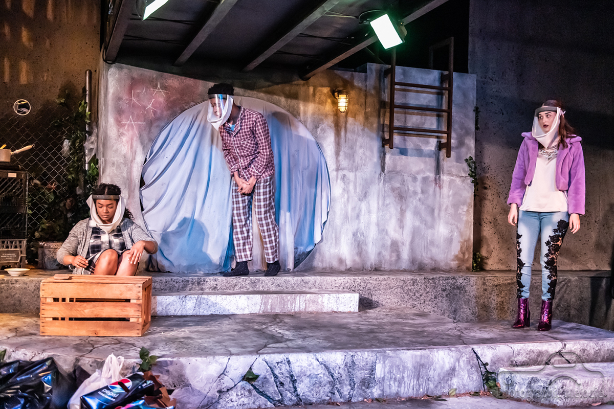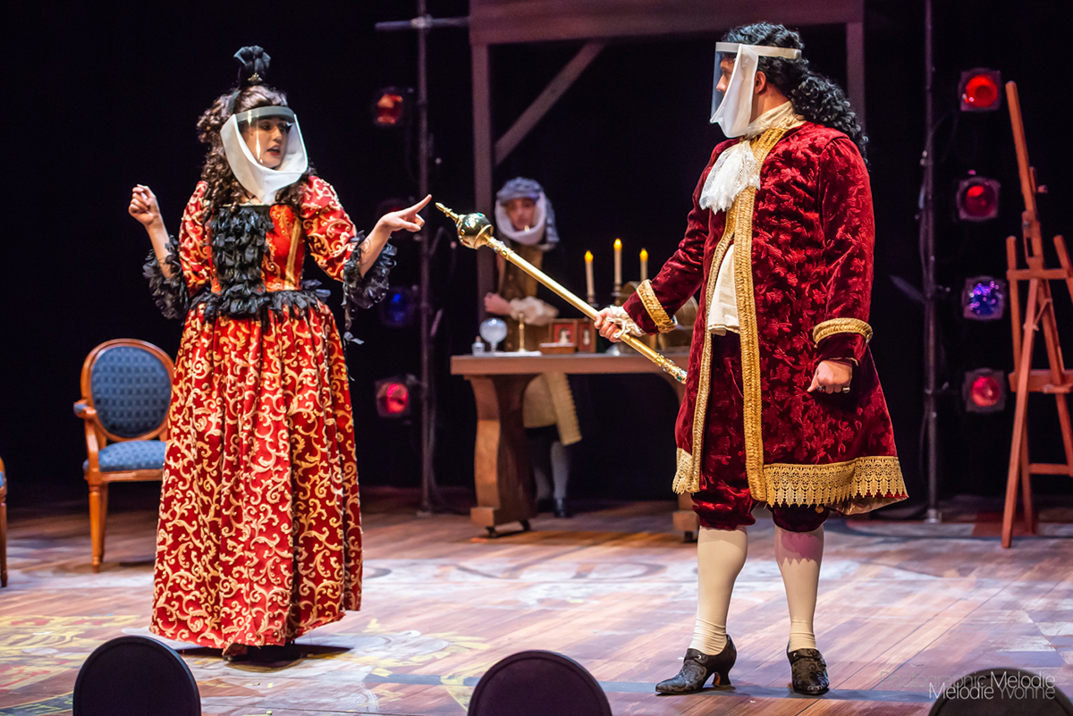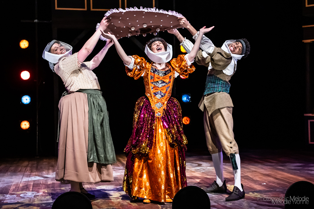 In her designs for Nell Gwynn, Allison’s terminal project, the application of contemporary and bold prints combined with period silhouettes was striking. She says of Nell Gwynn, “The audience participates in a meta-theatrical experience as they watch both our production as well as the performances taking place within it. The “fourth wall” continues to be broken with the use of removable trims and accessories. Ribbon loops, stomachers, sleeves, and skirts are manipulated right before the audience’s eyes. The Restoration period is represented through the historical silhouettes, but with the unveiled use of modern closures like snaps, zippers, and magnets, the audience never quite loses site of the modern theatre space the play occupies.”