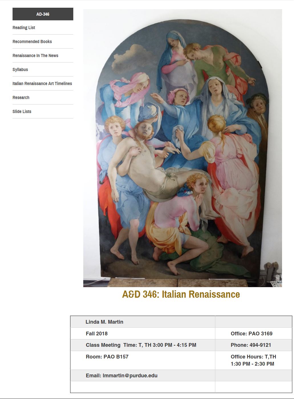 The course provides students with a comprehensive yet critical understanding of Italian Renaissance arts. It considers the major artistic centers of the period and the artists who worked in each of these regional centers. It examines the role of patronage and emulation in the artistic developments of the time, and relates these developments to the religion, politics, economics and domestic life of the period. Major artists studied range from Giotto in the early 14th century to Donatello and Botticelli in the 15th century and Leonardo and Michelangelo in the 16th century. Additional site maintained as resource.