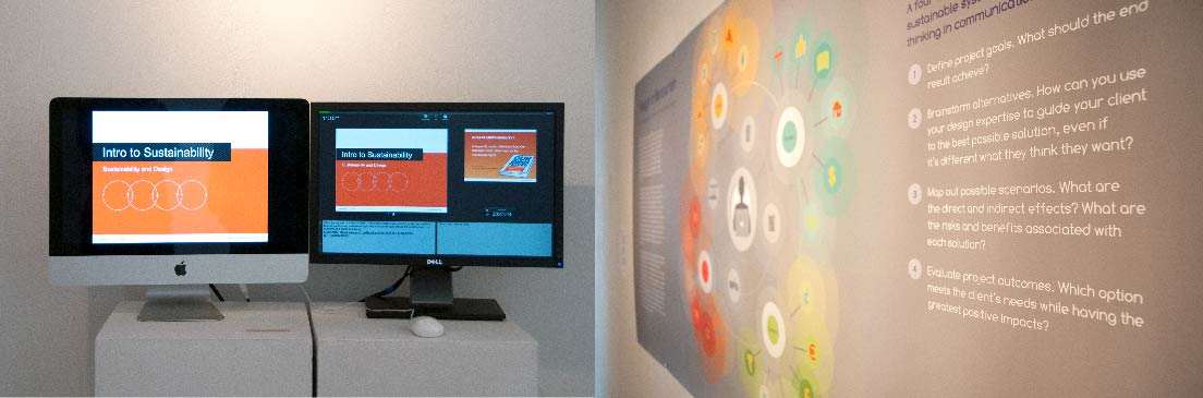 sustainable design, ecology, web | Throughout her research, Perullo explored sustainable solutions to the design process. She studied the formation of work that does no ecological harm, but also fosters positive social change, cultural well-being, a thriving economy, and a healthy planet. She researched the marriage of sustainability and communications design.