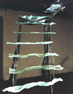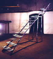 The Ralph G. Beelke Gallery in Creative Arts Building Two will host Jill Downen: Anxious Architecture from August 20 through September 14, 2001. Downen’s sculptural installations reconstruct architectural spaces based upon memory, reverie and imagination. Her use of fragile materials in structure, such as a warped glass staircase, raise issues of contradiction and functionality and make us aware of our relationships in personal spaces.