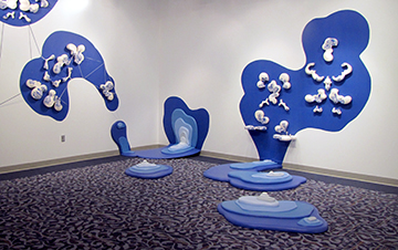 In room-size installations, or “environment systems,” emphasizing the repetitive organic patterns common in nature, Amanda Small creates intricate ceramic and mixed media “maps” implying both a literal and figurative reference to collective history and identity. She explores ways to utilize repetitive, shared patterns as a metaphor for collective experiences.