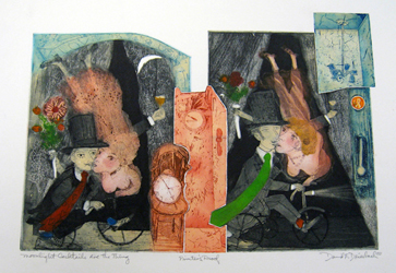 Traffic lights, chandeliers, top hats and tubas are props in the theatre of David Driesbach's imagination. His colorful and varied imagery populates a landscape of art historical references and self-portraiture. This 50-year retrospective includes original intaglios and lithographs, along with printing plates and working proofs, providing access to Driesbach's complete creative process. In addition, Moonlight Cocktails Are The Thing highlights important biographical events, providing insight into the origins of his psychological imagery.