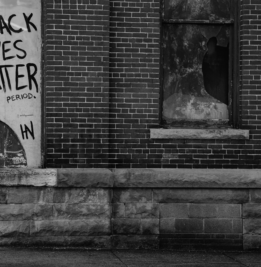 'Where Love Begins' was taken in downtown Indianapolis, near Mass Ave, in the middle of the summer during the height of activity surrounding BLM. I thought the look of the boarded-up business but the hopeful and uplifting art on it was an interesting contrast.