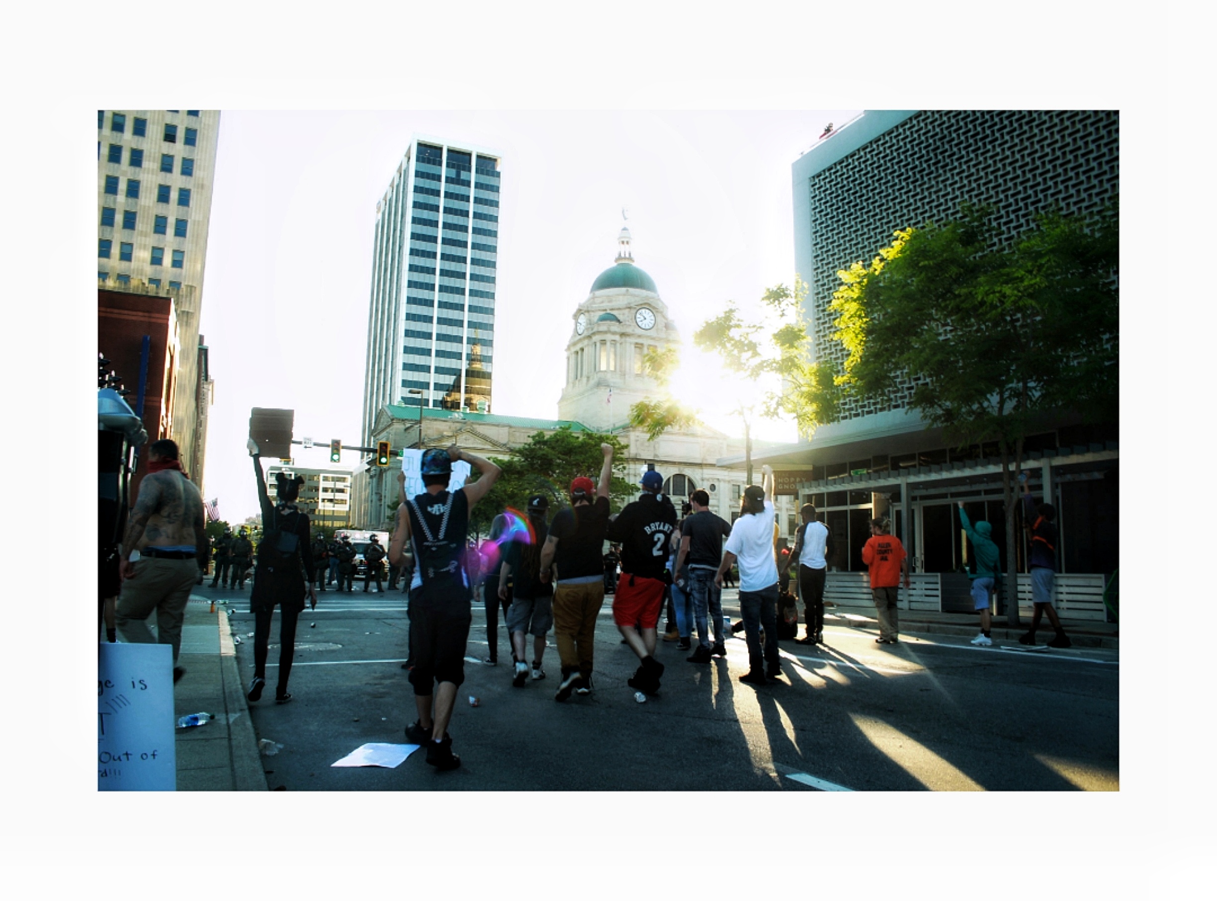 This was taken on day 2 of the Fort Wayne protests. After walking 5 blocks around the outside of the city we ended up meeting a line of police officers in front of the Hoppy Gnome on Clinton and Berry Street. This next hour tested me mentally seeing the anguish and resilience from many of the protestors as when this picture was shot we had been subjected to tear gas and rubber bullets on two separate occasions beforehand. Everytime we would collect ourselves and push forward. Holding a 20ft gap between us and them. Letting them know that we're here to stay. That we had a purpose. That we were a community of people supporting a cause and each other.