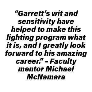 Garrett has designed the lighting for four mainstage productions at Purdue University Department of Theatre: Angels in America, Part One: Millennium Approaches; These Shining Lives; By the Way, Meet Vera Stark; and The Beaux' Stratagem, as well as numerous dance performances in the Division of Dance. He has built an impressive professional portfolio over his career, having designed lighting for Buffalo Theatre Ensemble, Madison Street Theatre, Oak Park Festival Theatre, Richmond Shakespeare, Yale University, College of Charleston, PURE Theatre, and Washington Ave Players.