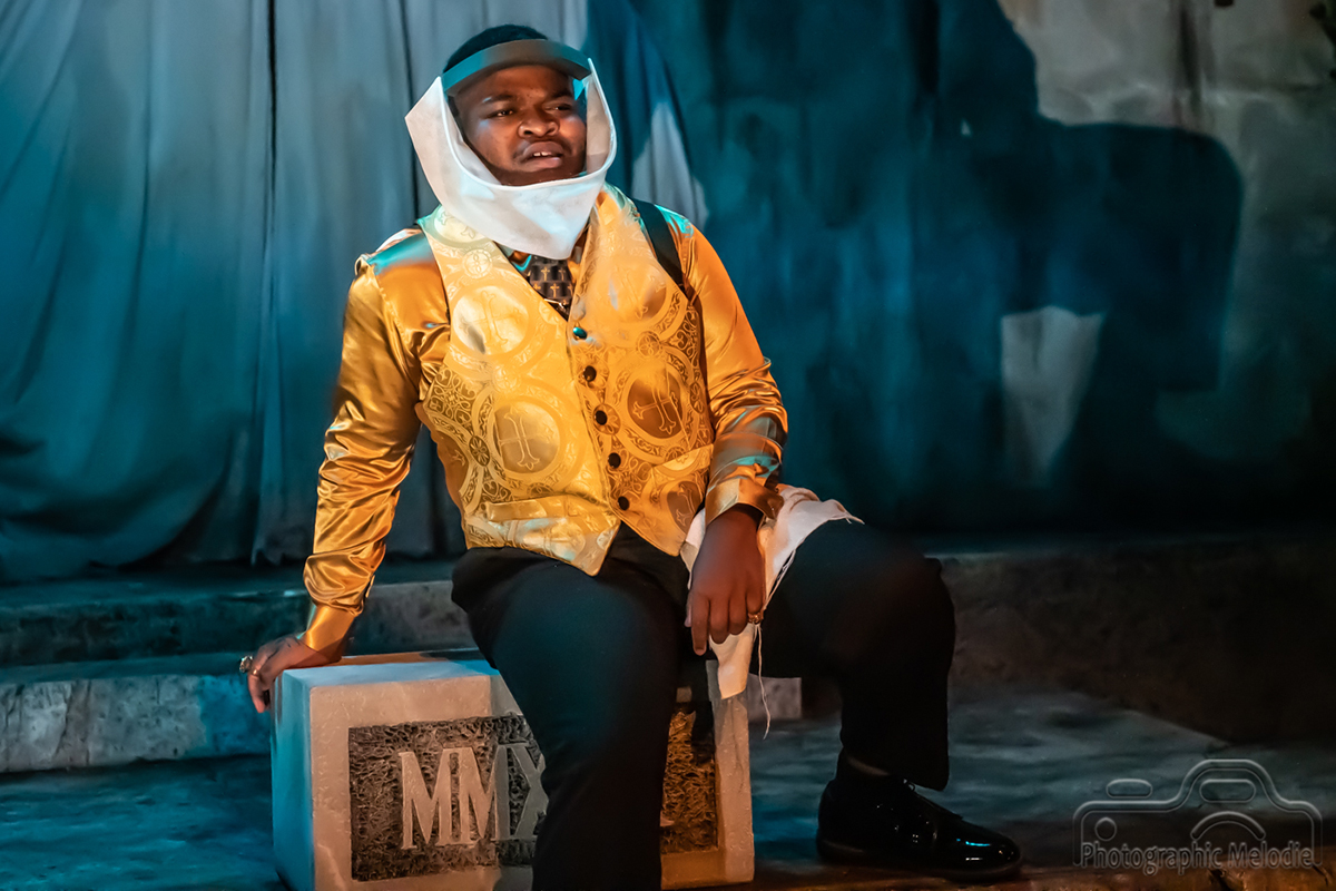 In her designs for Nell Gwynn, Allison’s terminal project, the application of contemporary and bold prints combined with period silhouettes was striking. She says of Nell Gwynn, “The audience participates in a meta-theatrical experience as they watch both our production as well as the performances taking place within it. The “fourth wall” continues to be broken with the use of removable trims and accessories. Ribbon loops, stomachers, sleeves, and skirts are manipulated right before the audience’s eyes. The Restoration period is represented through the historical silhouettes, but with the unveiled use of modern closures like snaps, zippers, and magnets, the audience never quite loses site of the modern theatre space the play occupies.”