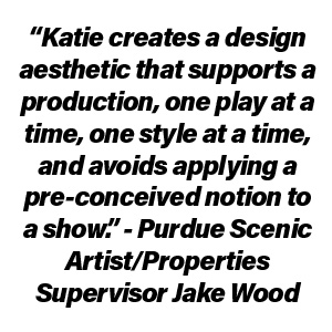 Kate Cardinalli (MFA Scenic Design, 2021) graduates next week from the Purdue University Department of Theatre. This talented student joined Purdue after receiving her BFA Production Design for Motion Pictures and Television from the Academy of Art University (San Francisco, California) and has worked in the art departments on commercial, television, and feature shoots; corporate events; and theatrical productions. Her intellectual approach to play analysis leads to truly unique designs.