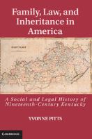 Family, Law, and Inheritance in America: A Social and Legal History of Nineteenth Century Kentucky, by Yvonne Pitts, Cambridge University Press, 2013