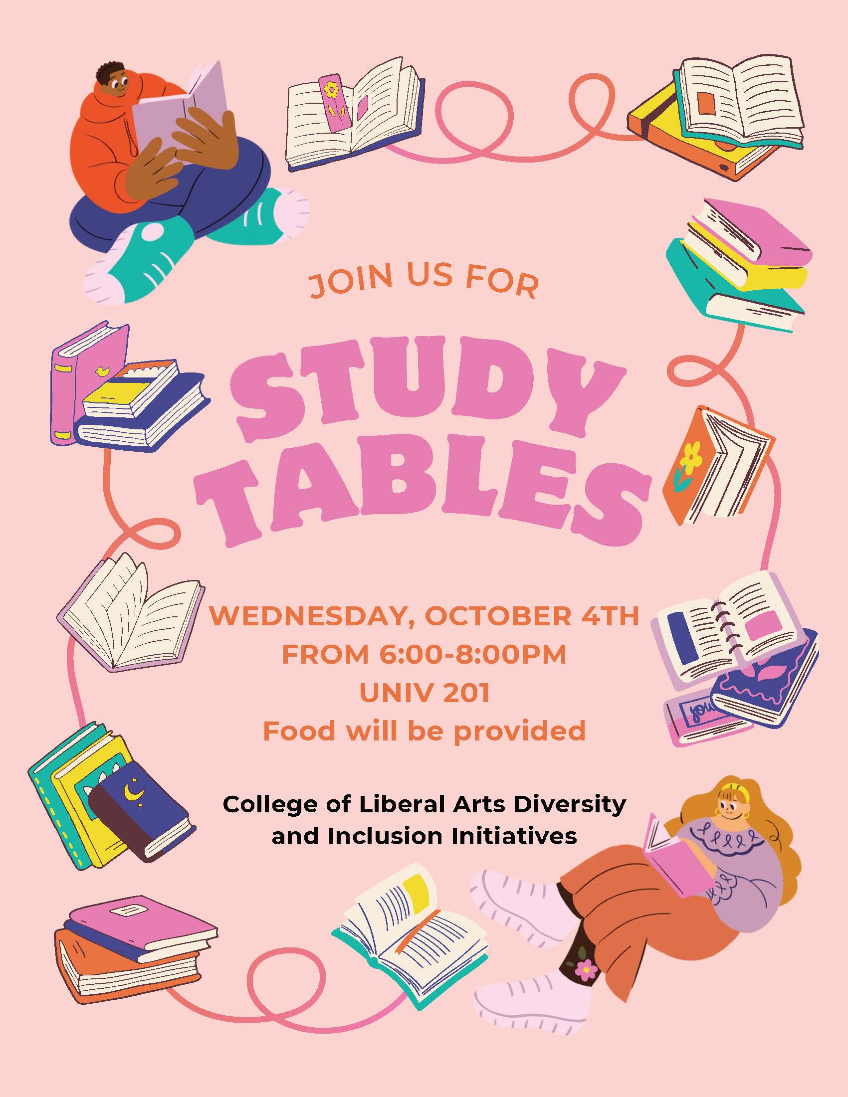 Join fellow students at their Study Tables! These events happen periodically through the year. Food is provided.