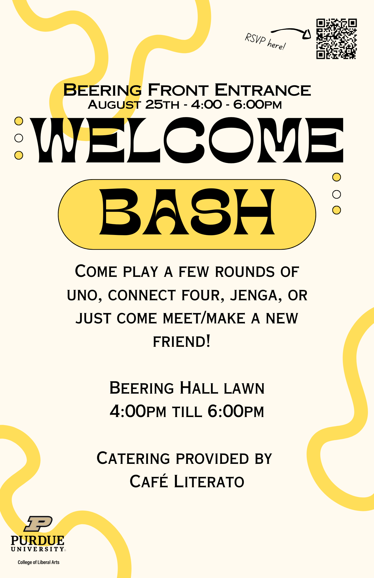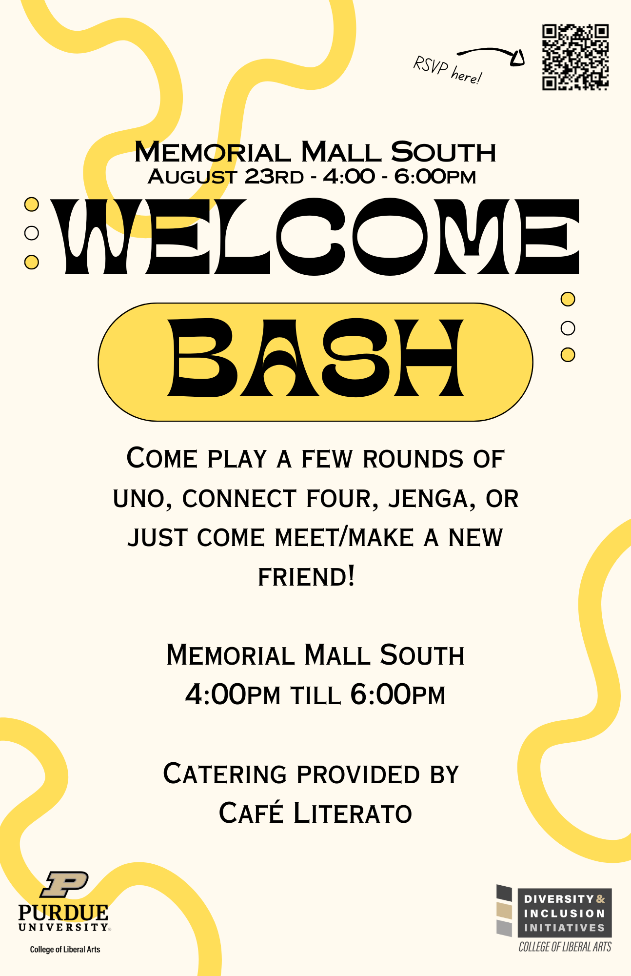 August 23rd 2024 - Memorial Mall South - 4.00p to 6.00p Grab a sandwich and play a few rounds of Uno, Connect Four, Jenga, or just come to meet/make a new friend! |