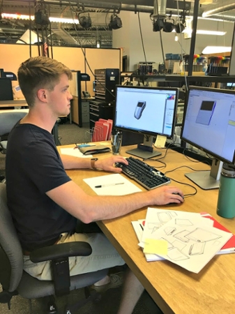 Day to day, I help my supervisor, a fellow Purdue industrial design grad, generate concepts for future and current ETC products. We meet with engineers and project managers to align our goals for the product to that of the company and then begin sketching, computer modeling, and revising potential designs. I spend about 50 percent of my day with Adobe Creative Suite open and the other 50 percent with SolidWorks open.